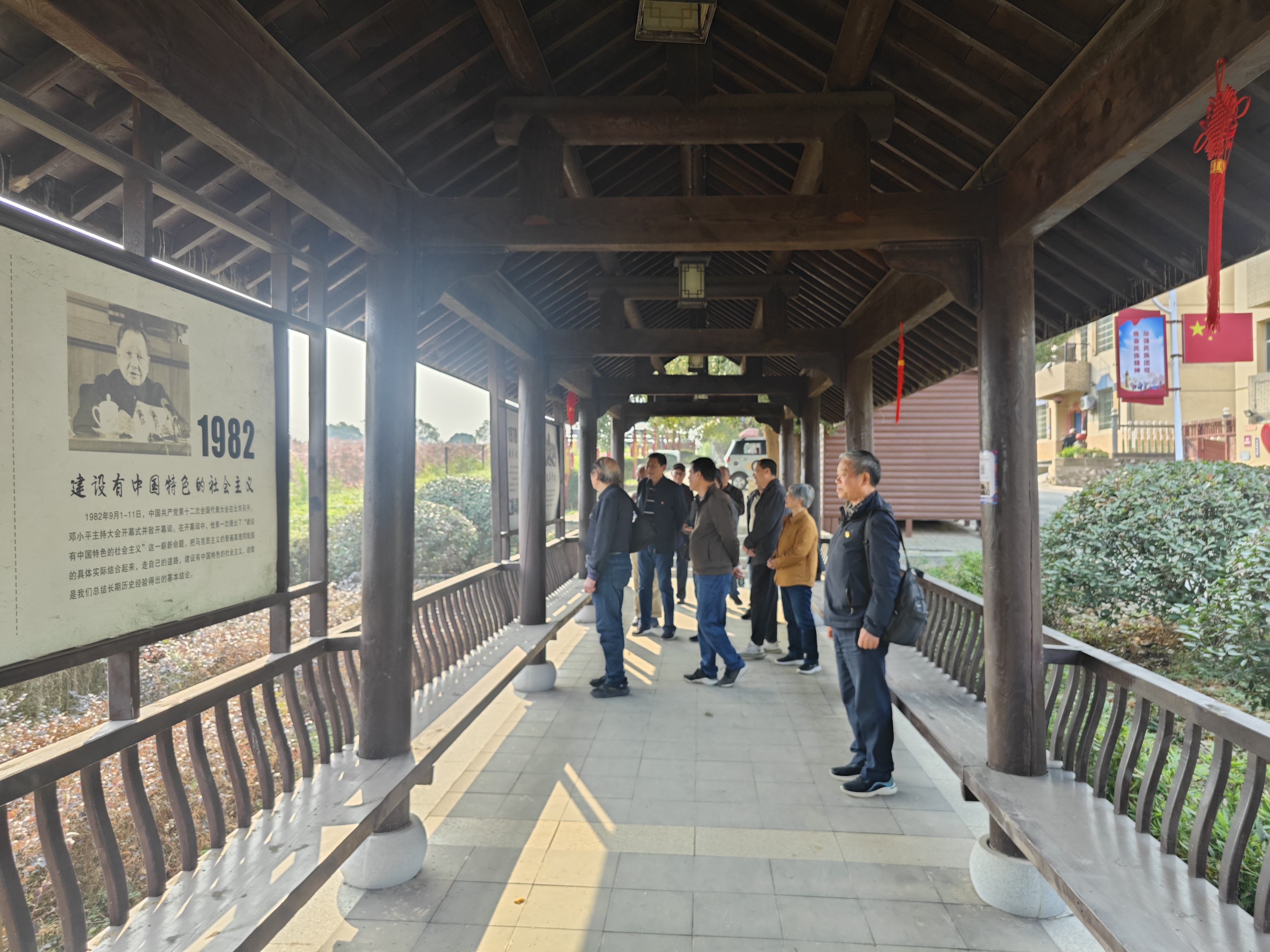 随后,党员们前往敖山镇洋林归侨少数民族村,该村是江西省唯一的归侨少数民族聚居村,聚居着壮、傣、瑶、苗、侗、京等7个少数民族的归侨群众。在村史馆内,老党员们深入了解了洋林村的奋斗历程,近距离感受多民族文化交融的和谐景象。
