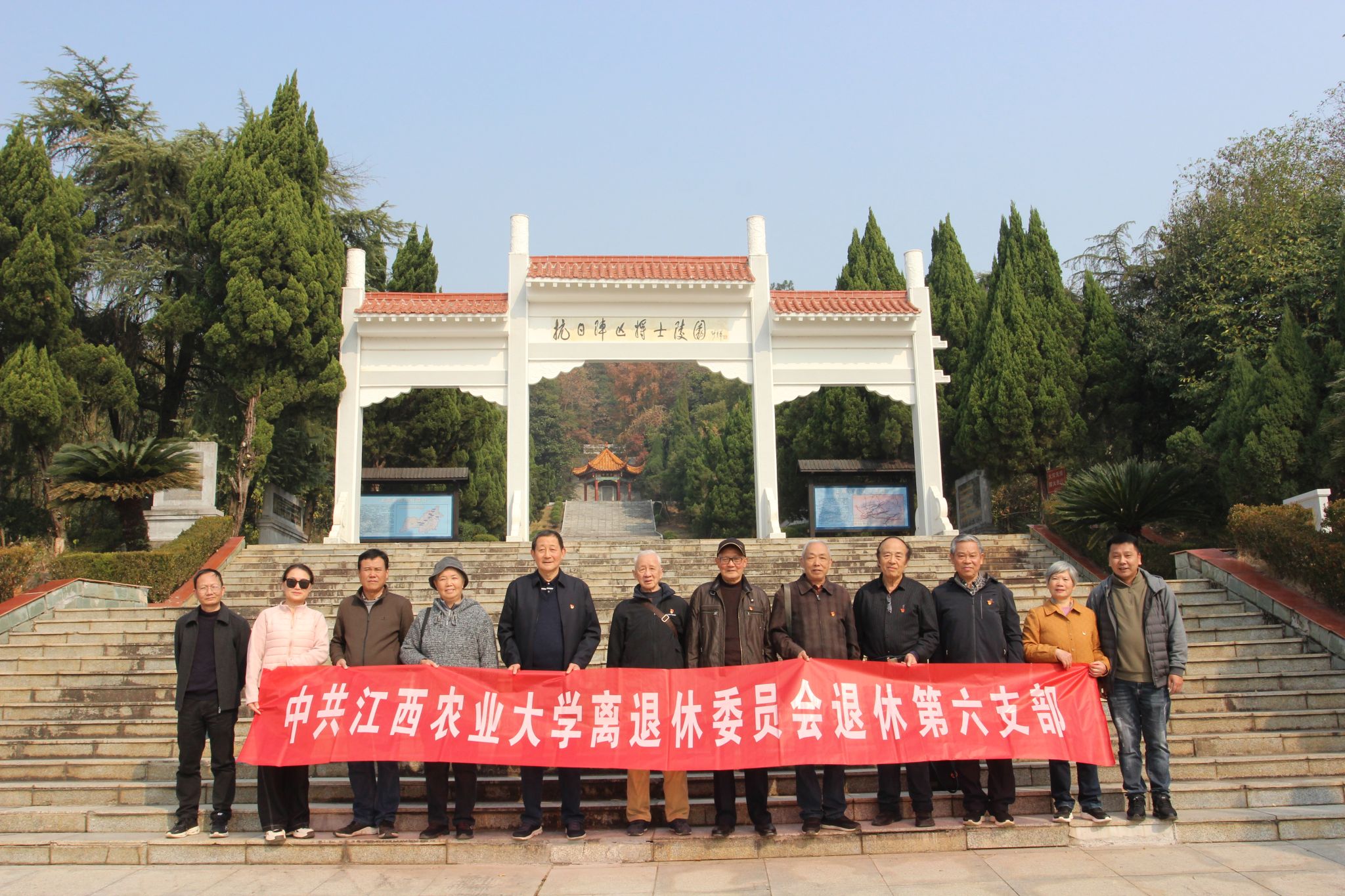 在上高会战遗址,瞻仰了抗日阵亡将士陵园,重温抗战历史,缅怀抗战英烈。